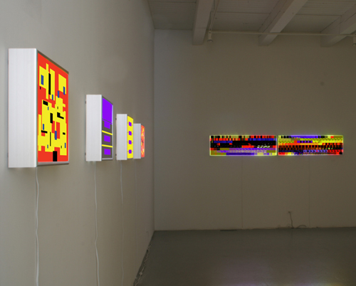 The cels reference memory and perception. Since individual video frames advance quickly within the animatography, these images are often not experienced as separate compositions. Instead, they may only be identified after being seen as individual cels. Each image is framed and illuminated by a custom-designed aluminium lightbox. Through the combination of the lighting unit with color perception, the forms within the still images may be perceived as moving.